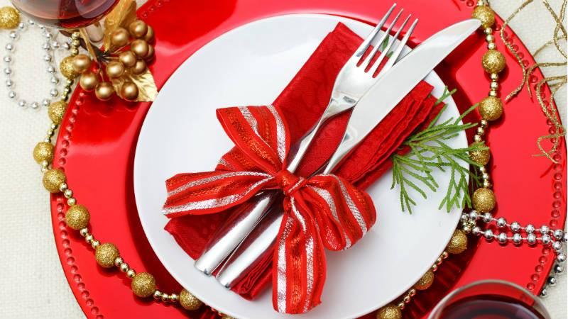 Decorando la mesa de Navidad.