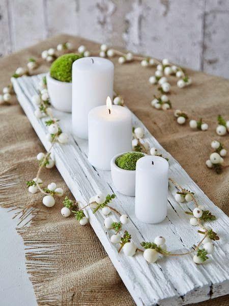 La mas sencilla y económica es la del tablero de madera, la cual puedes pintar de blanco o no, y acompañarlo de velas blancas o puedes optar por decorar el tablero de madera con un conjunto de piñas, a las que le puedes dar un toque de color.