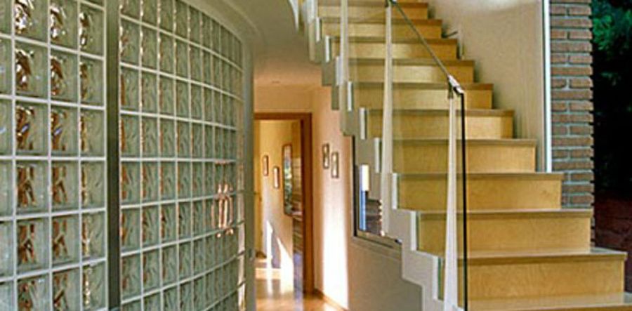 Los pavimentos y la escalera están revestidos de parquet sintético de haya. Para separar la cocina del resto del espacio, se optó por hacerlo en pavés de vidrio transparente. Así se aprovechó la luz de la zona de la escalera.