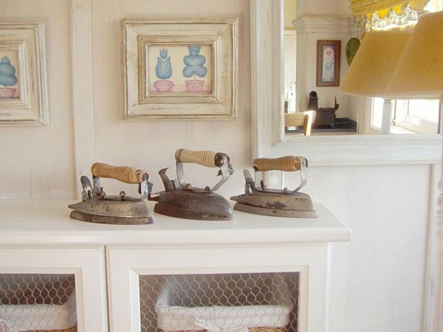 Este rincón está repleto de objetos decorativos preciosos, como las planchas de diferentes medidas o la vaca con cencerro. Por otro lado, hay que señalar que la propietaria de la casa se decantó por un par de focos de aluminio para dar luz al conjunto. La experiencia de Edgay nos recuerda que es posible dar con sorprendentes hallazgos en las tiendas de antigüedades.