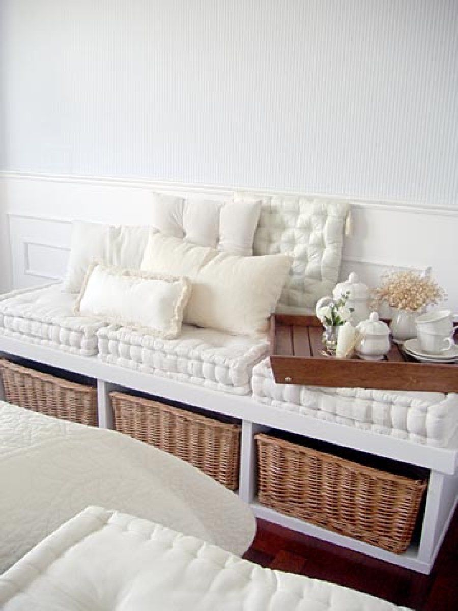 Después de confeccionar ella misma las caídas que combinan con los estores de loneta de Ikea, aprovechó la cretona de la firma Sati para tapizar el bandó. La luz corre a cargo de una lámpara de techo heredada con pantallas de lino y pequeñas lágrimas. No podemos perder de vista el mueble de televisión convertido por milagro de la restauración, el mimbre y los cojines.