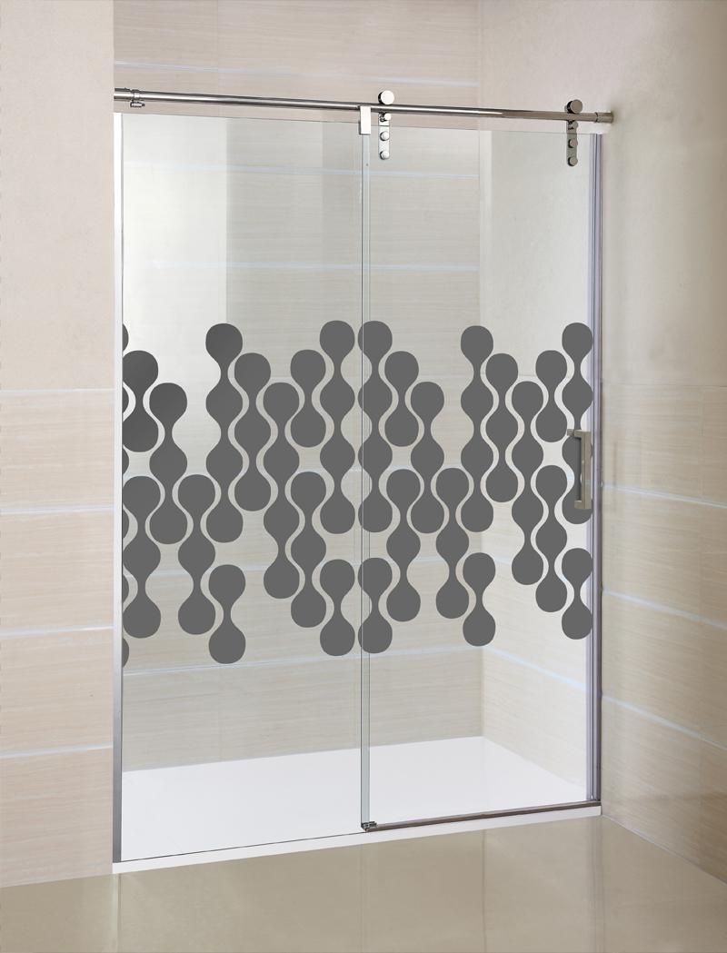 Este diseño es muy similar al anterior, pero en este caso se añaden unas pequeñas burbujas en el lateral de apertura. Así se da un toque distinto a la mampara.