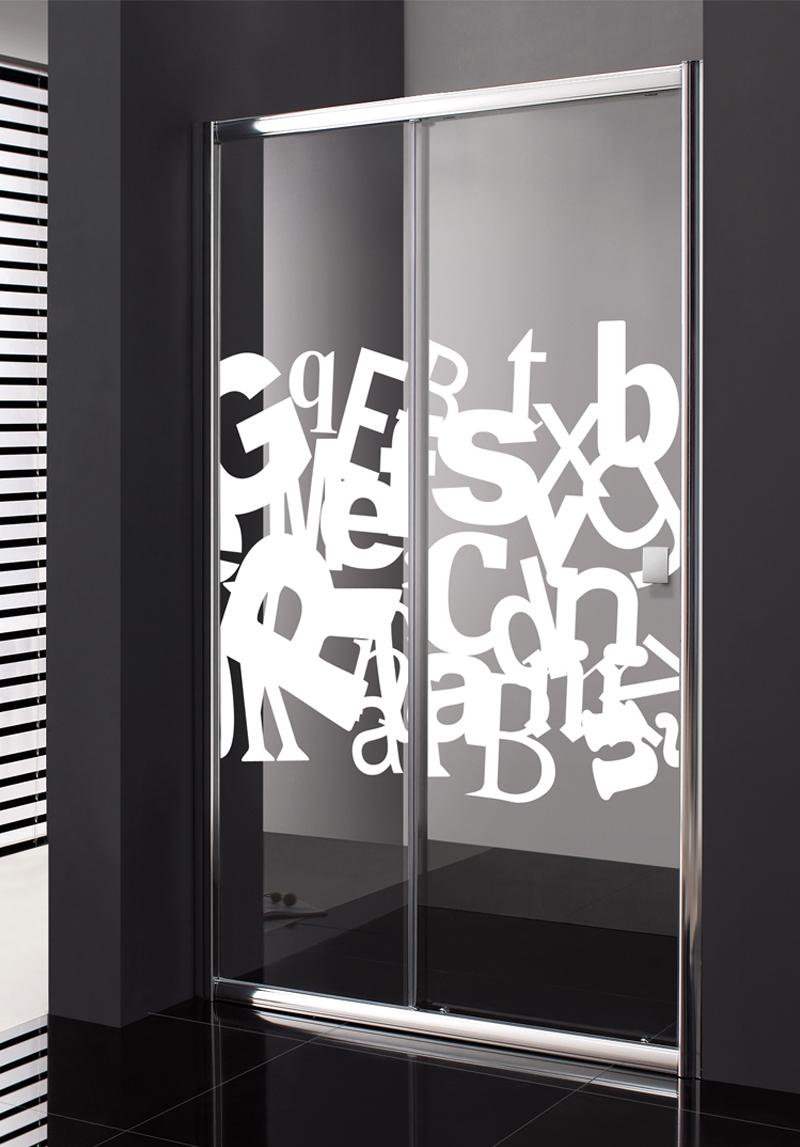 La última propuesta es otro original diseño que se basa solo en letras sobre la mampara. Casi parece una sopa de letras, convirtiéndose así en un juego en el cuarto de baño.