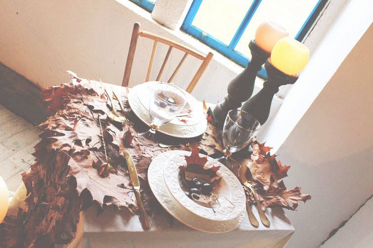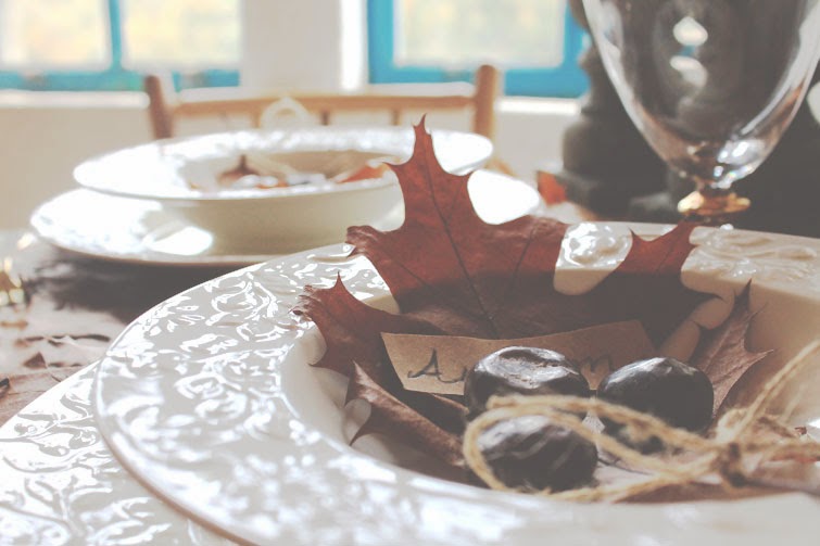 En esta ocasión, pensamos un espacio más elegante y con elementos de la naturaleza. Queríamos mostraros una mesa llena de encanto, con un ambiente repleto de velas y detalles hechos a mano. Ese camino de mesa de hojas naturales, pasamos una tarde preparándolo!! Pegando hoja aquí, hoja allá!!! Pero mereció mucho la pena, porque el resultado es espectacular, no os parece??? No hicimos los pasos de este DIY, pero es muy fácil y si las hojas están secas, el resultado es todavía mejor y dura un montón!!