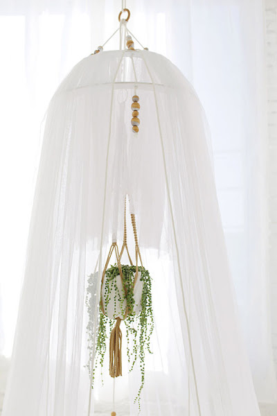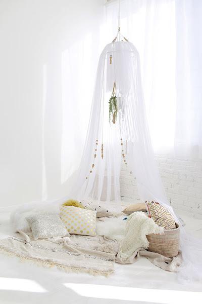 Ahora bien, si necesitas algo más especial, fíjate en este DIY de Design love fest: con cuatro detalles monta su propio dosel, creando un rincón súper chic que puedes instalar en cualquier zona, ya sea en el exterior o el interior de tu vivienda. Yo desde luego me lo imagino, en mi pequeña terraza y me parece espectacular ¡Lástima que no me dejen instalar cosas ajenas a la fachada para ejecutarlo!.