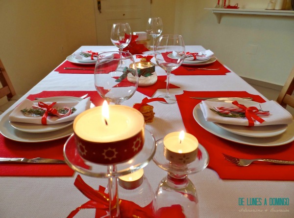 Como puedes ver, no todo es comprado. Dar un nuevo uso a elementos cotidianos ha jugado un papel esencial a la hora de decorar la mesa. Si no tienes al alcance de la mano alguno de estos elementos, no desistas, estruja el ingenio y piensa en la manera de incorporar otros. En nuestro caso, tan sólo compramos el fieltro para los salvamanteles, unas tiras de lazo para decorar y los bastones de caramelo para dar un toque alegre a la mesa. El resto fue reutilizado.