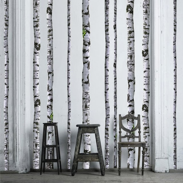 A simple vista parecen abedules, y es que dan el pego, ¿no os parece?. Una pared cubierta con stickers que simulan estos arboles casi a la perfección, y es que si no te fijas.......Una genial idea ¿verdad? Eso sí, yo le añadiría un mueble antiguo pintado en un color alegre. ¿Qué os parece en amarillo?¿O tal vez en rojo? Sería la nota de color perfecta para este espacio. ¿Alguien se atreve?