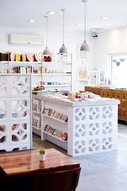 Algo podemos sacar en claro de todo esto y es que los bloques de hormigón son un buen material para hacer estanterías. En casi todas las imágenes de hoy hay una pero lo que cambian son los tipos de bloques de hormigón que las forman y su diseño. Hay bloques de hormigón cuadrados, rectangulares, triangulares, huecos por dentro, planos, con algún dibujo decorativo.... vamos que hay bastantes y si además los pintamos pues las combinaciones pueden ser miles. A mi personalmente se han gustado los ejemplos de las imágenes 2 y 8. El de la segunda imagen me ha gustado mucho por su simpleza y por su limpieza visual. Parece un mueble frágil pero en verdad es bastante resistente. Es perfecto para una decoración de estilo nórdica a la que queramos darle pequeños toques industriales. Por otro lado el ejemplo de la imagen número ocho se ve más robusto, con una apariencia mas "recargada" gracias a los dibujos de esos bloques. Este elemento decorativo me gusta mucho porque le dan al expositor donde está un carácter muy original. Si pasamos esto a nuestras casas podríamos hacer por ejemplo una mesa de escritorio o una estantería con estos bloques por ejemplo.