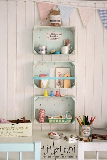 Por otro lado la opción de utilizar las cajas como estantes no me termina de convencer porque no se cuanto peso podría llegar a aguantar, que creo que seria mas bien poco. La verdad que no lo se seguro pero si alguien me dice que tiene una y que aguatan bien perfecto porque no me parece mala opción y además quedan muy bonitas.