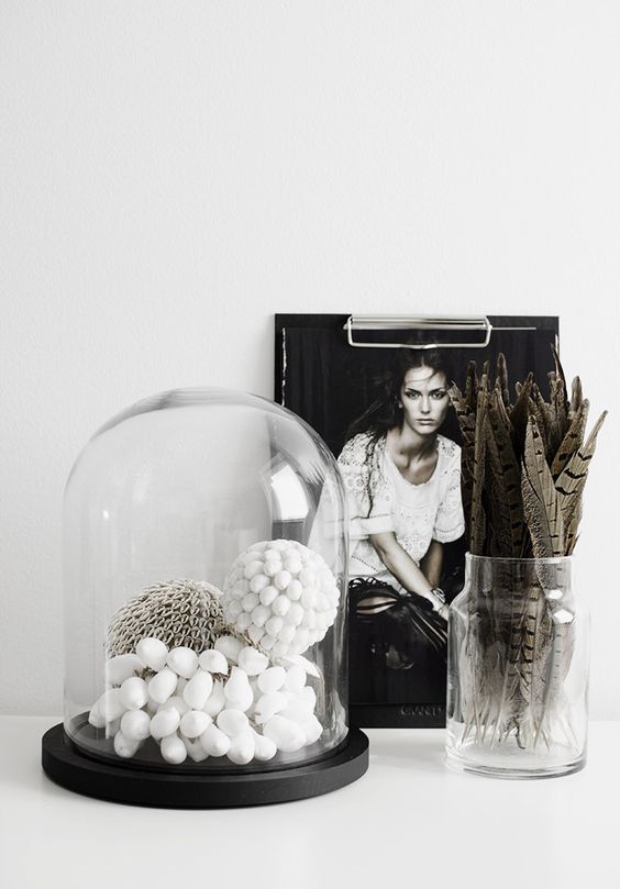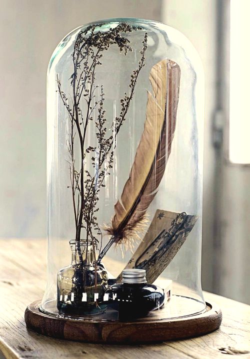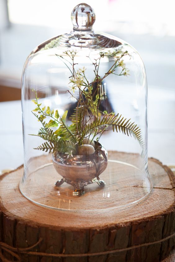 Otra ventaja que tienen es que pueden encajar perfectamente en cualquier estilo decorativo, ya sea industrial, clásico o minimalista. Eligiendo bien lo que vayamos a poner dentro la adaptaremos a nuestro estilo. También podemos cambiar su peana para adaptarla a nuestro estilo y darle un aire distinto. Podemos elegir entre no ponerle ninguna, colocar una de madera, o un platito de cristal, o una sección de un tronco o una rama..... la que más nos guste. Por otro lado me gusta el aire delicado que transmiten, parece que lo que esta en su interior se va a romper en cuanto quitemos la campana.