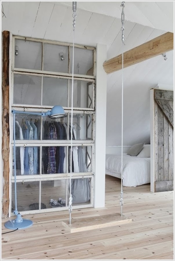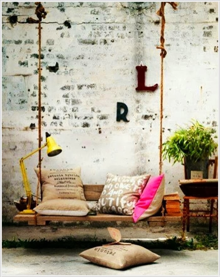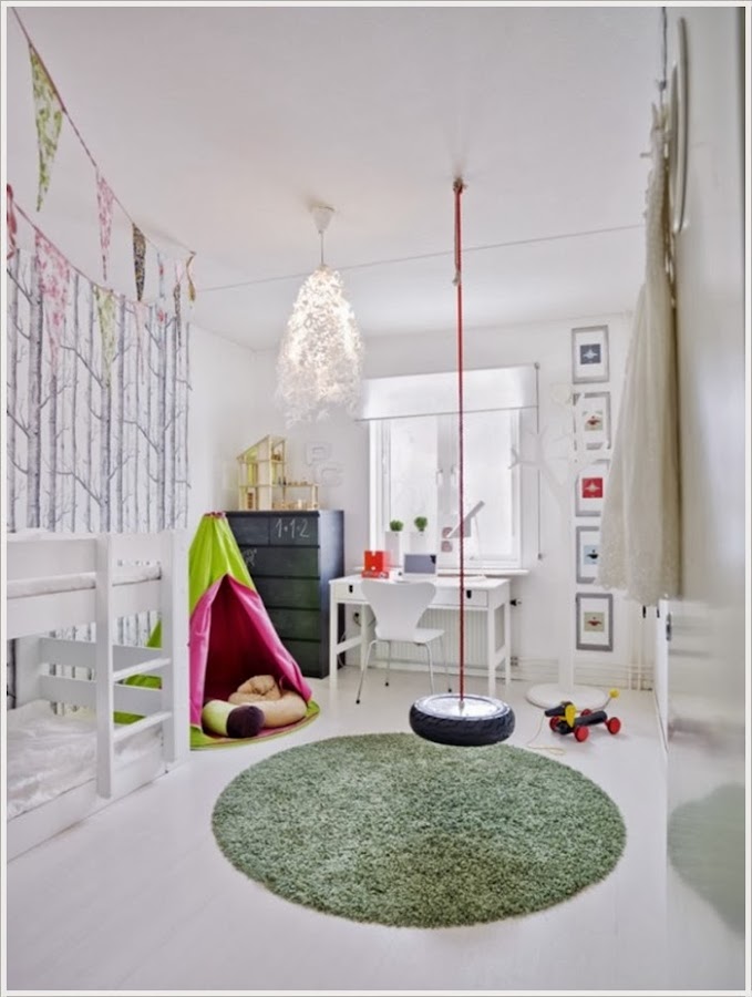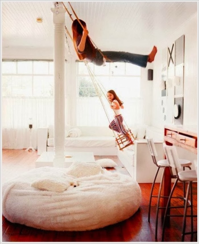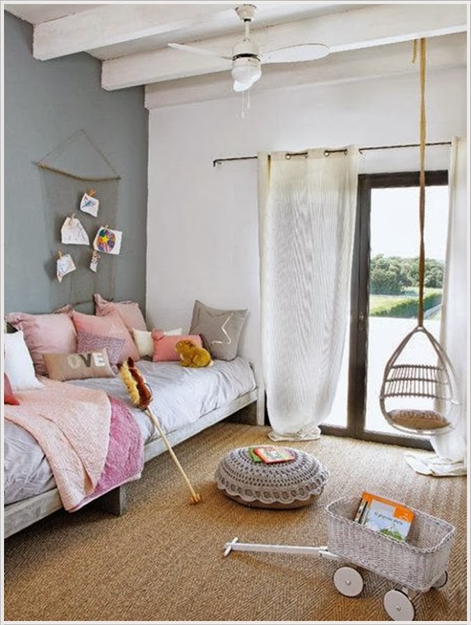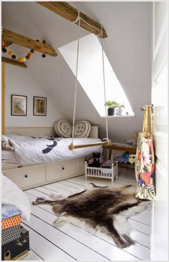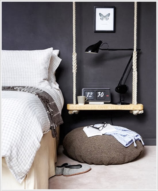 Por cierto no os perdais la última idea, usar el columpio como mesita de noche. Me gusta.
