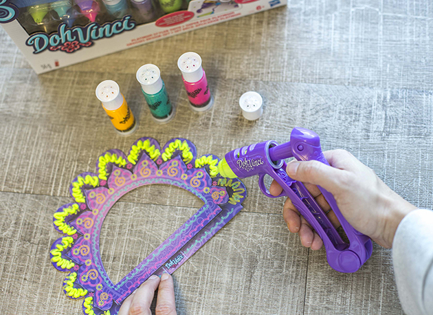 El juguete se llama DohVinci, es de PlayDoh, y lo que más me encanta de él es que me recuerda muchísimo a las pistolas de cola caliente que usamos los mayores.