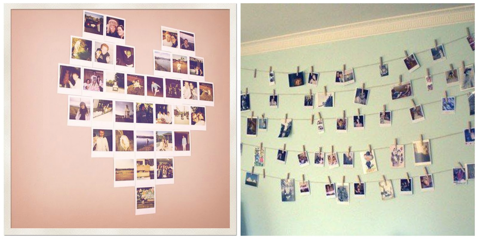 Un corazón hecho con polaroids. En un arranque de esos que nos dan, imprimí un montón de fotos en una app que imita el formato de la polaroid. Iba a poner ese corazón en frente del escritorio. Pero ahí se quedó. Sigue pareciéndome una opción original, y que si te cansas, puedes quitar sin que te de ningún dolor de cabeza. Si el corazón te parece demasiado pero te gusta la idea de las polaroids, aquí te enseño otra opción.