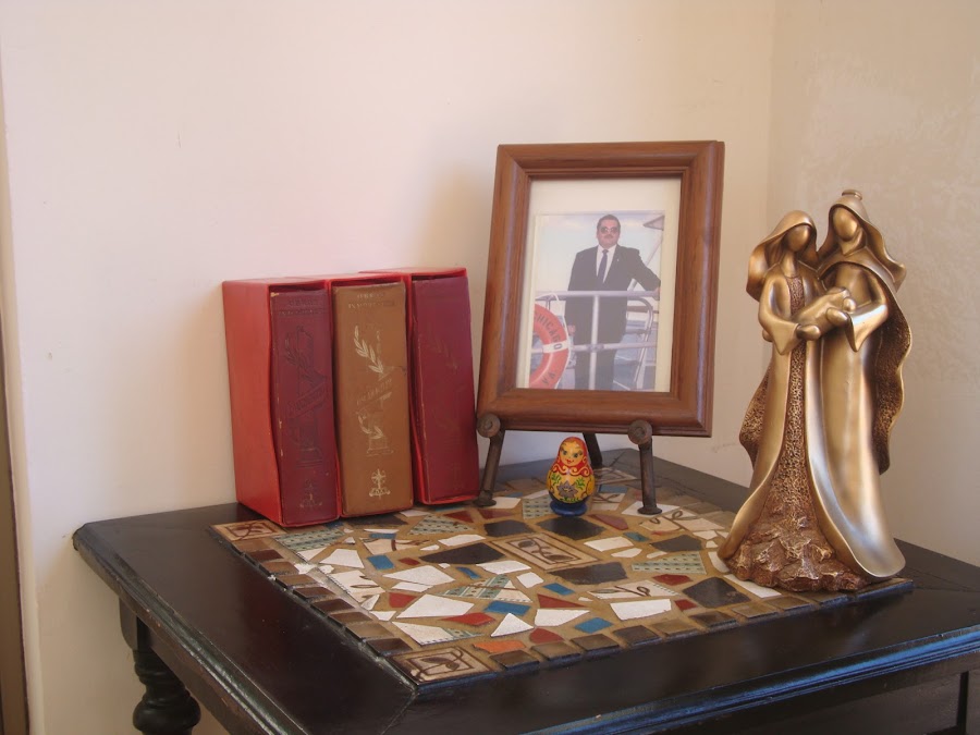 Por eso, tomé una idea sacada de una revista de decoración, e incorporé muchos de los libros heredados en mi sala y en la entrada de la casa, junto a mis revistas de diseño y, también, a mis álbumes de fotos que he creado.Les gusta la idea?