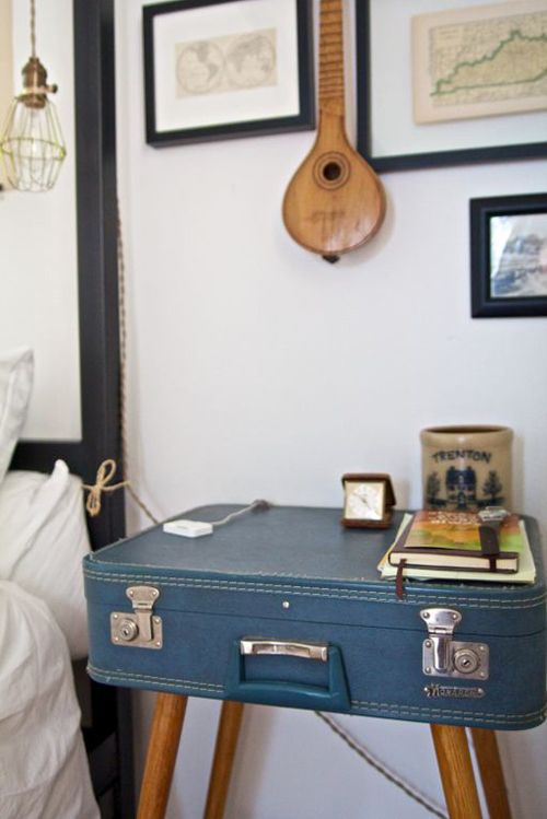 Como podéis ver son muchos los usos que podemos darle a unas maletas viejas y así darles unas segunda oportunidad y sacarlas del olvido, o mejor dicho del fondo del armario o el trastero. Como mesitas de noche, como sillón, como mueble bar, como mesita, como estantería, como tocador.... yo incluso he llegado a ver alguna usada como macetero. Como os digo muchas veces, el limite esta en vuestra imaginación. Yo no tengo maletas decorando en casa pero cuando veo fotos como las que os traigo no puedo evitar pensar en la de viajes e historias que tendrán a sus espaldas y que le otorgan a lugar donde están un aire interesante, aunque también parece como que estas de paso y en cualquier momento te vas a ir.