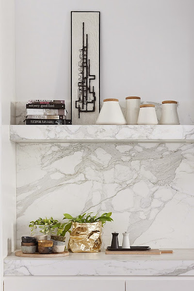 Y es que veo un montón de ambientes en los que el mármol es actor importante, y no hablo sólo de revestimientos de baños y encimeras de cocina. Sobre todo me refiero a ese tipo de marmol blanco con betas grisáceas, que, combinado en ambientes más actuales nos dan un resultado espectacular...El truco es que el ambiente no sea tipo recargado, para que quede limpio y bonito...