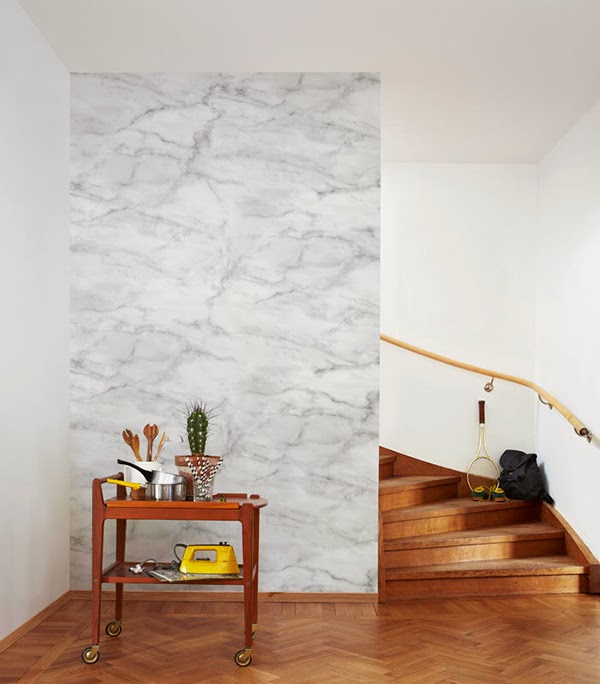 Y qué me decís de este papel pintado imitando marmol para destacar alguna pared...