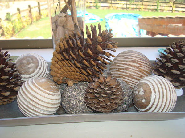 Navegando por internet y mirando los bellos posteos navideños que asoman en la red a cada instante, el año pasado encontré una foto maravillosa de un florero (o base) de cristal lleno con piñas de pin ...
