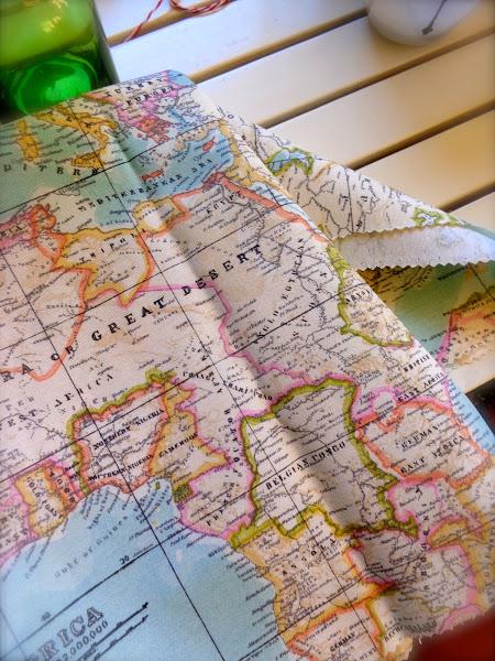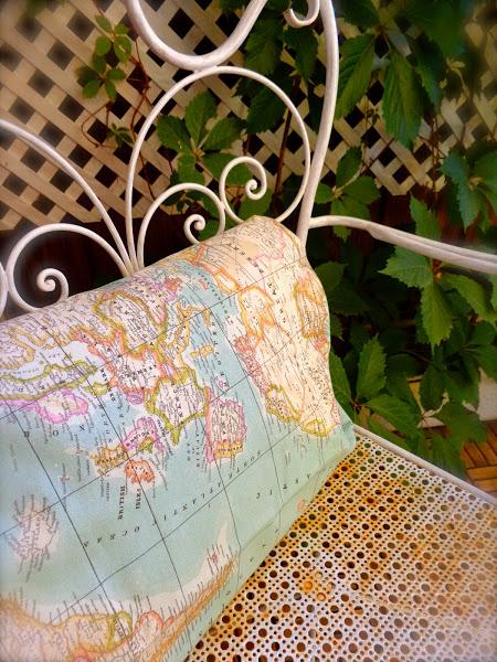 Y yo aquí me bajo... Con la sensación de haber recorrido pedaleando, miles de kilómetros, sin perder el aliento... Abarcando con la mano sobre una sencilla tela, todo un mundo a mis espaldas, con la que fabricaré ESE DETALLE VIAJERO que decorará el rincón geográfico, que por el momento, más me he esforzado en conocer a fondo... Mi propia casa...