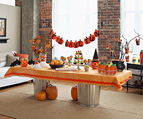 Pasamos a la decoración, y como sabéis en la fiesta no puede faltar el negro y naranja pero también se aceptan colores con mas glamour como el blanco y el oro. Os voy a mostrar unas imágenes para que os inspiréis en decorar vuestro hogar.