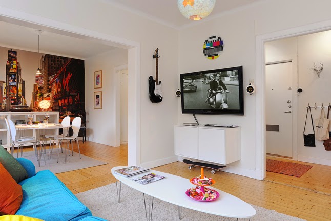 Y si algo caracteriza a un piso de estudiantes es que se utilizan objetos personales para decorarlo, algo que les recuerde a su familia, amigos y que reafirme quien son, como las guitarras y monopatines que encontramos en este.