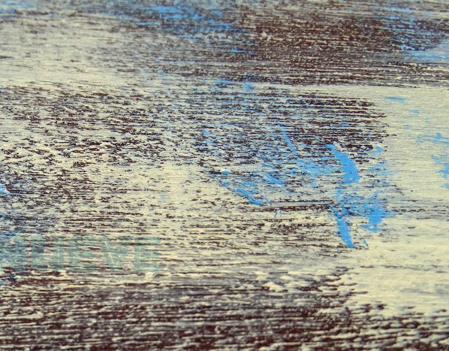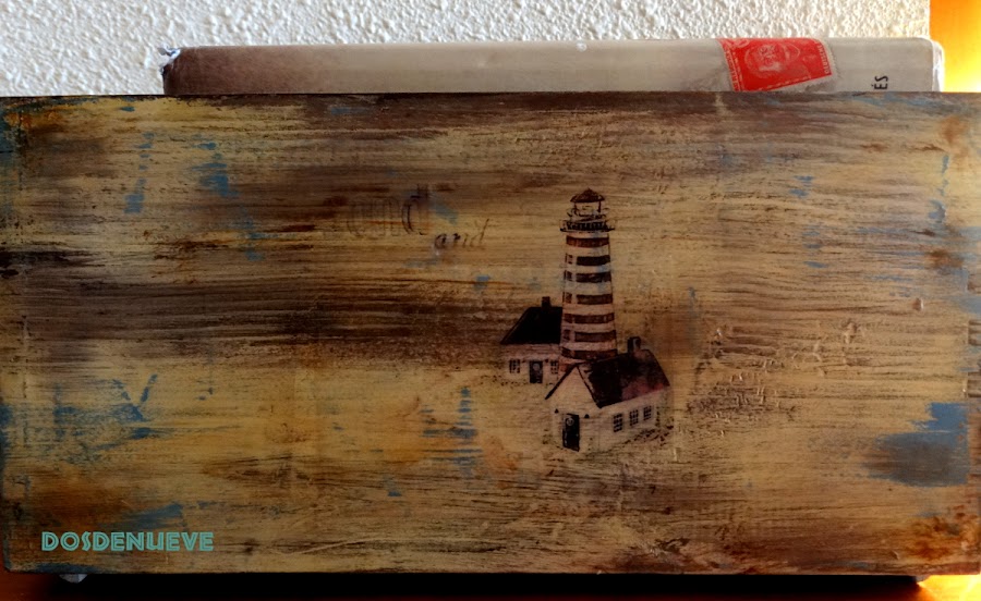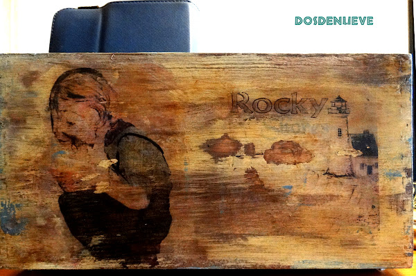 Así que se nos ocurrió que la mejor solución era utilizar la lija para intentar borrar los contornos y ya, de paso, nos decidimos a "romper" la imagen, total... ¡no teníamos nada que perder!. El resultado nos encantó porque la imagen quedó totalmente integrada en la pintura y además le daba a todo un efecto desgastado, quedando todo integrado a la perfección.