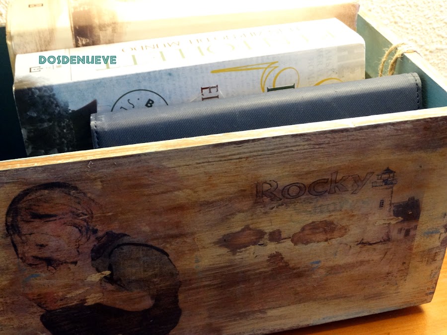 Como ya os anunciamos el viernes, la semana pasada la dedicamos a decorar cajas, cajones y cajoneras en nuestro intento por conseguir orden en la casa. El viernes os presentamos unas cajas de madera decoradas para una habitación infantil y ahora os detallamos cómo hemos decorado esta caja cuyo destino es ser contenedor de libros en un rincón de lectura (que bien podría ser una mesilla de noche).
