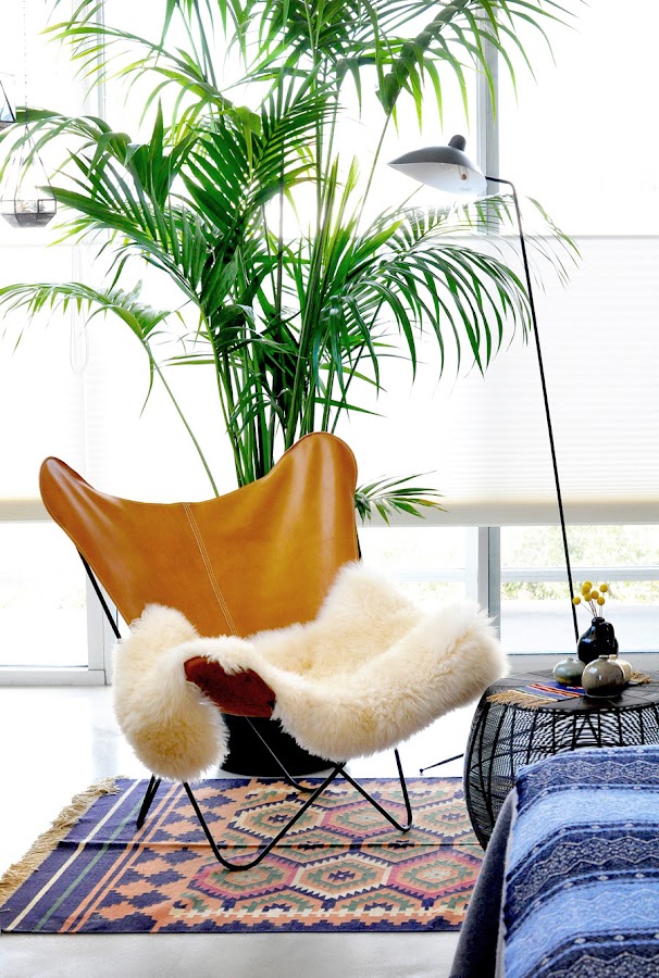 DORMITORIO. El dormitorio sigue fiel a este estilo e introduce la silla Butterfly, el resultado es un aire un tanto étnico gracias a los textiles elegidos.