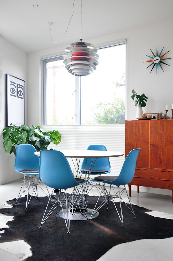COMEDOR. Aquí las sillas de los Eames comparten espacio con la Dining Table de Noguchi y la lámpara de techo.