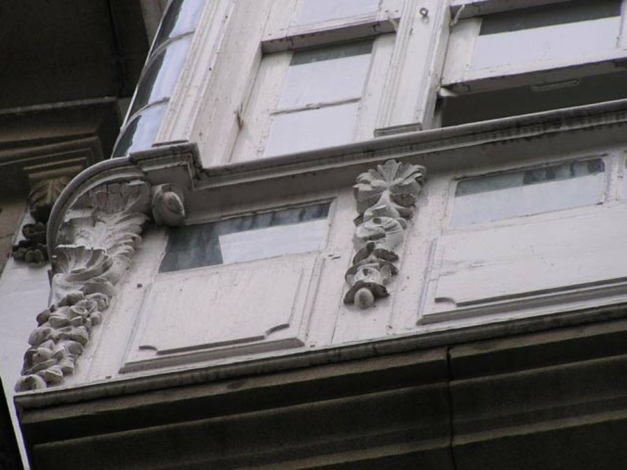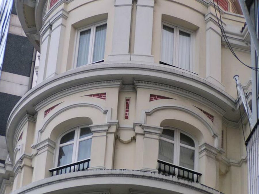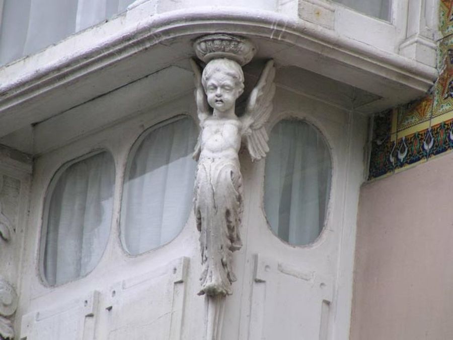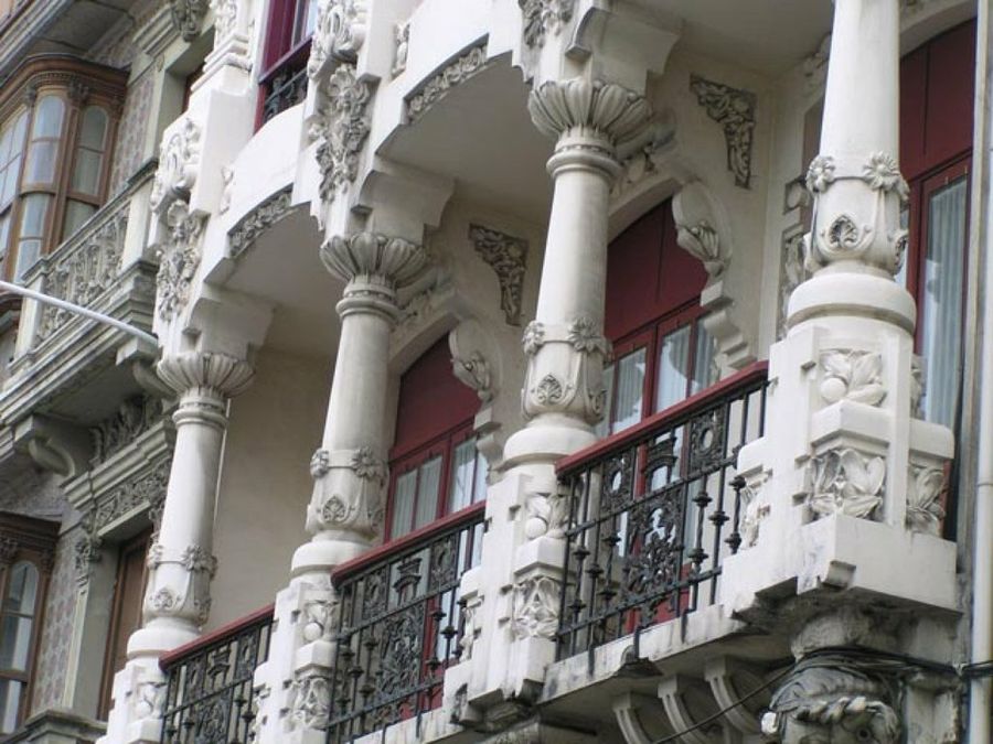 También las columnas son a menudo protagonistas de las fachadas. De corte neoclásico, barroco o vanguardista, están a pie de la calle. Soportan volutas, florones y un gran abanico de detalles arquitectónicos.