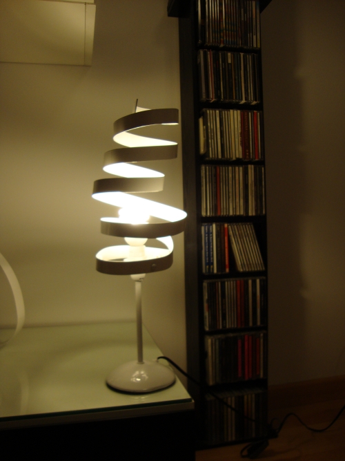 La lámpara muelle la he fabricado con una pletina de aluminio a la cual le he dado forma de espiral.