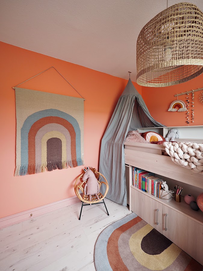 El macramé del que os hablamos aquí, es una técnica que cada vez se ve más en decoración. Y en el caso concreto de los dormitorios infantiles, este arcoíris macramé lo está petando... ¿Ya tenéis el vuestro? ¡Pronto esperamos publicar un DIY con todo el proceso `para que podáis hacerlo en casa!Vía A beautiful Mess