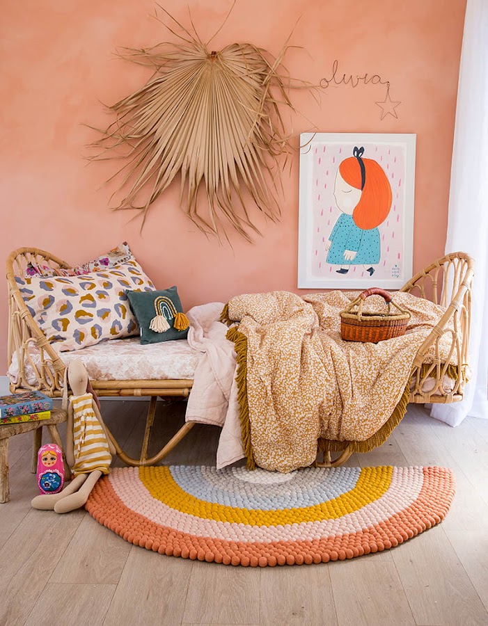 Alfombras para el suelo, para decorar la pared como ya hemos visto, e incluso como cabecero de la cama. Hay alfombras de algodón que además se pueden lavar en la lavadora o de vinilo y PVC, que puede fregarse con fregona. ¡Importante para dormitorios infantiles!Vía