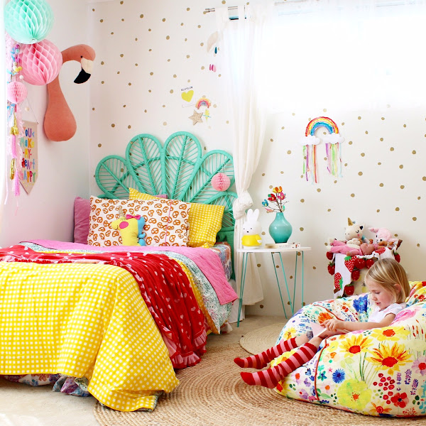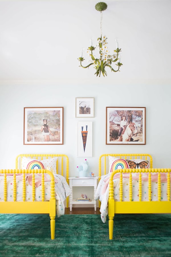 Aparte de la colección Flower Kids diseñada por de Drew Barrymore con el arcoíris como motivo principal, lo habitual es elegir mobiliario de diferentes colores.... En lugar de irnos a gamas monocromáticas o con un único color, podemos elegir mobiliario, textiles y piezas de decoración de diferentes colores y mezclarlos.Vía