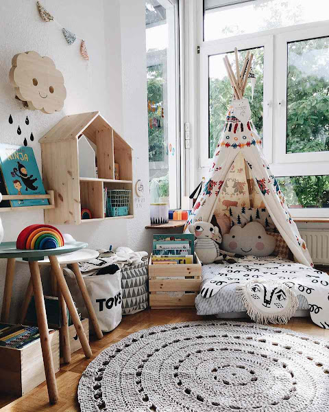 Y como no, los juguetes y libros, que seguro que ya os habíais dado cuenta de que decoran en sí mismos, sobre todo, todos esos juguetes de madera y texturas y fibras naturales.Vía