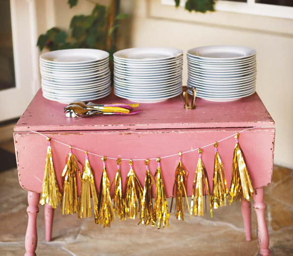 Y como no, con ciertos detalles para tu mesa como centros de mesa o personalizando los cubiertos de madera para el postre o adornando tu tarta con una mini guirnalda e incluso adornando el borde del soporte de tartas ...¡el limite es tu imaginación!.
