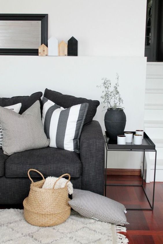 Junto al sofá para almacenar manta o revistas, es muy funcional y estético. No da sensación de desorden.