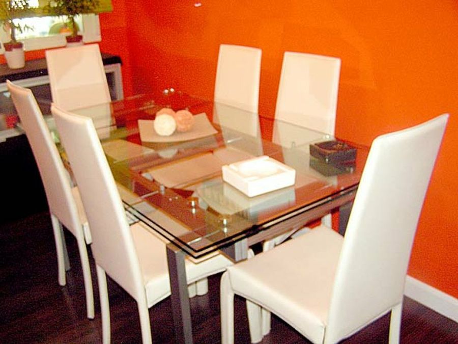 El comedor es un conjunto que ha ido emigrando poco a poco del salón a la cocina, siempre y cuando ésta admita la posibilidad de albergarlo dentro de su superficie. Seis sillas rodean a una mesa de cristal que invita a la celebración de cenas con familiares y amigos.