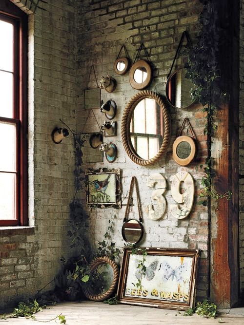 He reunido algunas imágenes de composiciones con espejos podéis ver más en nuestros panel de espejos de Pinteres.