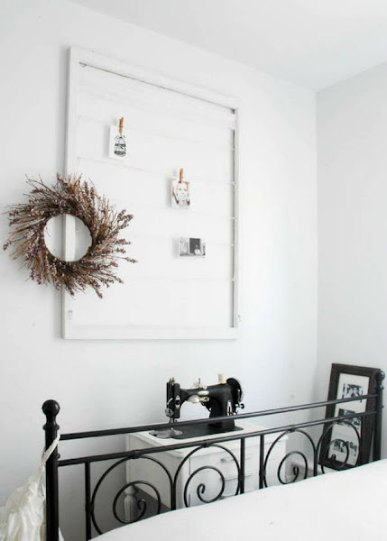 Si la idea te gusta, pero te da un poco de "no sé qué" arriesgarte, puedes probar a hacer una composición parecida. Esta ves el marco es blanco igual que la pared. Lo único que destacará en ella es toda esa colección de cosas que cuelgues de ella.