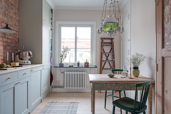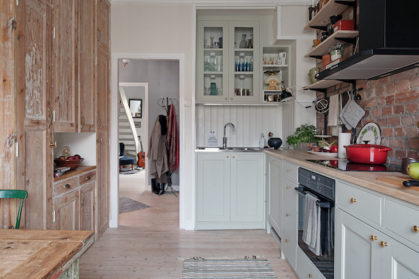 Nos encanta cómo han sabido aprovechar la vieja carpintería de la cocina, y que sabiamente han mezclado con muebles nuevos. Es una reforma mucho más económica que hacer una cocina nueva, y que además le da mucho más carácter.