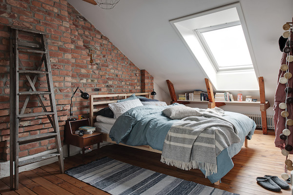 Con un marco muy limpio formado por paredes blancas y suelos del mismo color, fotomurales, papeles pintados y muros de ladrillo rojo ponen la nota de color.