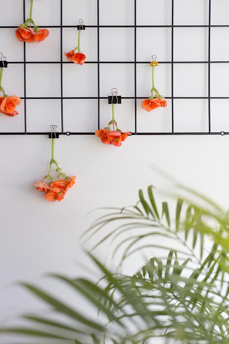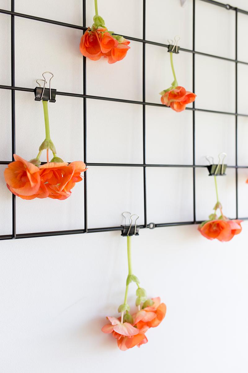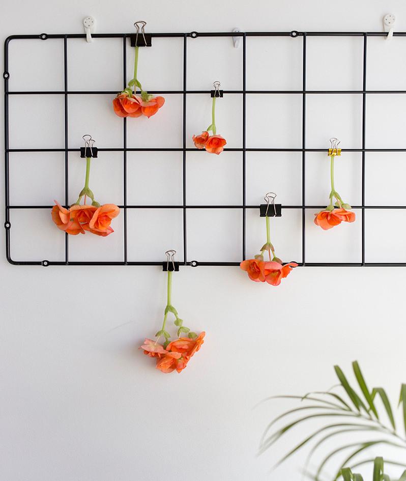 En mi caso, en su día cree una pequeña composición con pequeñas flores de azalea que había comprado para algún estilismo, creo… Tengo una reja de hierro que me sirve para casi todo y este fue uno de los primeros usos que le di. Sujeté las flores con las pinzas y la verdad que el resultado me encantó, al lado de mi pequeño jardín doméstico (ha cambiado mucho porque casi todas estas maravillas se asfixiaron el pasado verano…). Una forma diferente de decorar con flores y de añadir una dosis de vida y color a un espacio.