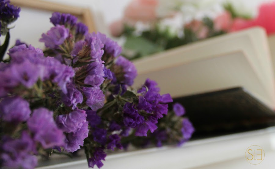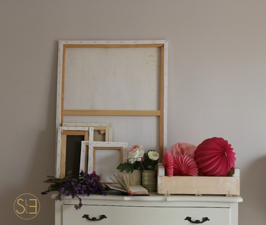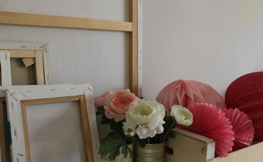 He elegido una imagen entre romántica y nostálgica, con mucho blanco y toques de rosa en diferentes tonos. Lienzos, pompones, algunas flores, una libreta de notas, y poco más , sobre una cómoda de lineas clásicas.Sencillo y melancólico.