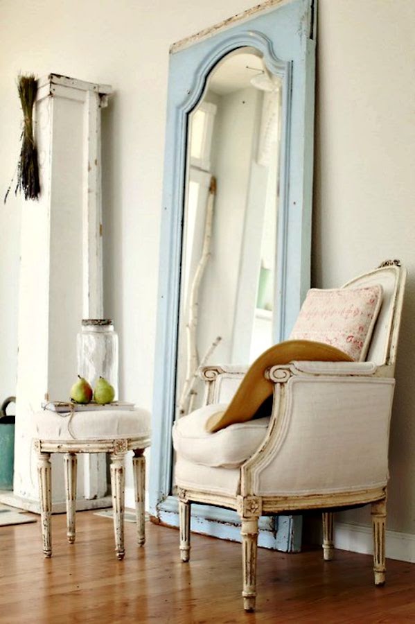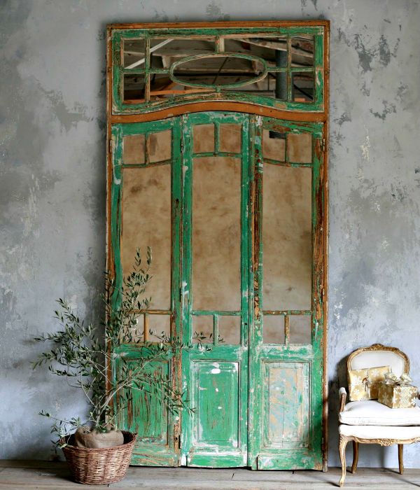 Tal vez pueda convertir una puerta antigua en un espejo y ubicarlo en una de las partes más importantes de la casa, la entrada.
