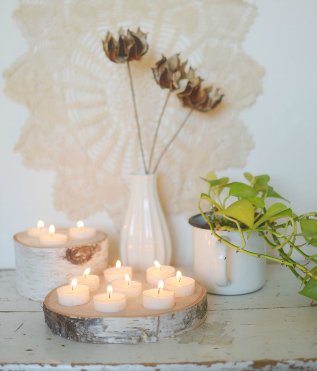 Como os digo, hay infinidad de usos. La forma más utilizada que he visto para utilizar las rodajas de madera es como salvamanteles/bandeja, pero recopilando ideas por la red me he encontrado verdaderas maravillas como por ejemplo utilizarlas para hacer imanes, adornos para el árbol, taburetes, posavasos y un montón de ideas low cost parar decorar con rodajas con madera, son las reinas de la imaginación!