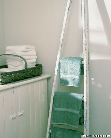 Si tienes una escalera vieja en casa que no sabes que hacer con ella, o simplemente te apetece incorporarla a la decoración de tu baño, descubrirás el universo de posibilidades que se abren con un elemento tan simple, desde un accesorio para poner jarrones con flores u objetos decorativos hasta un completo organizador de toallas y enseres de baño.
