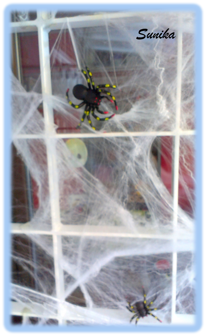 Ahora nos queda el interior. Mas telarañas y arañas, brujas y geles para las ventanas. Os dejo una muestra.