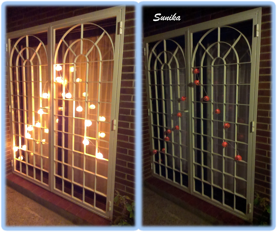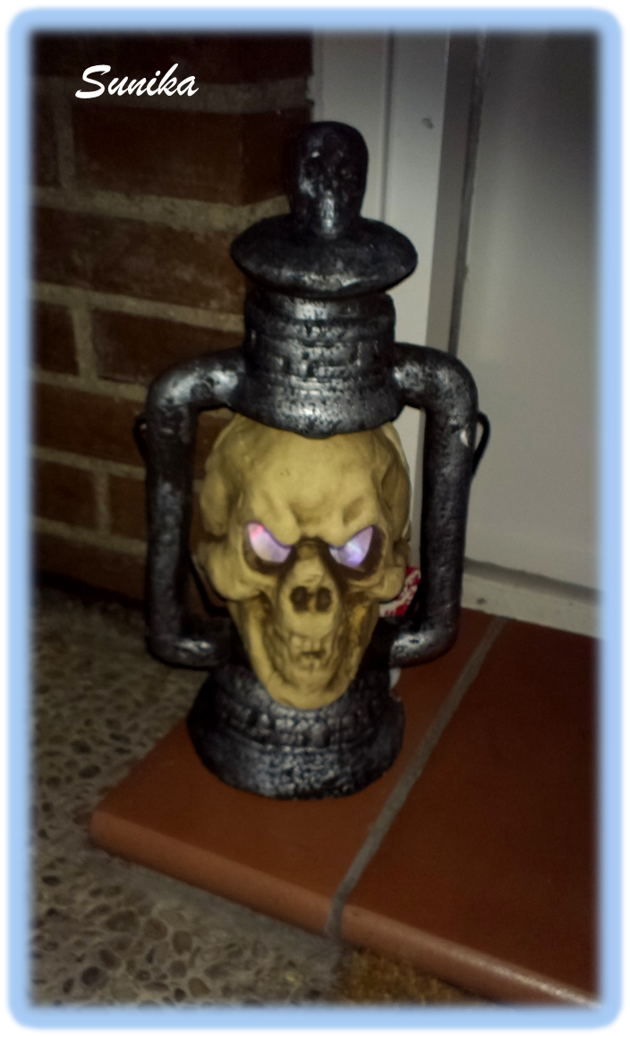 Luego anoche colocamos también una guirnalda de calabazas que se iluminan y quedan muy bonitas por la noche.