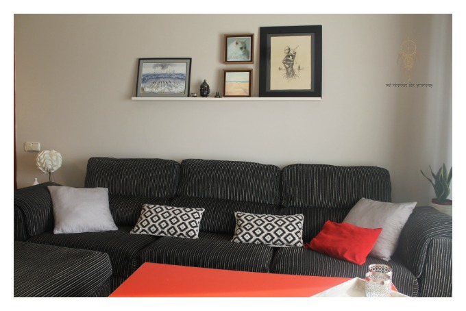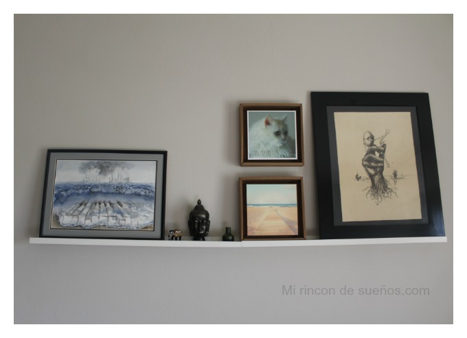 He sucumbido a la versatilidad de los estantes para cuadros,(ya tengo uno en el despacho) y he decidido ponerlo también en el salón, ya que cuando quiera puedo cambiar su decoración a mi antojo.